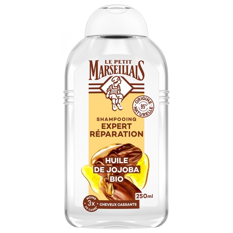 Le Petit Marseillais Jojoba Repair Expert Shampoo 250ml is a shampoo specially designed for damaged, brittle hair. Enriched with jojoba oil, it has nourishing and repairing properties. Hair is strengthened, more resistant and protected from breakage.