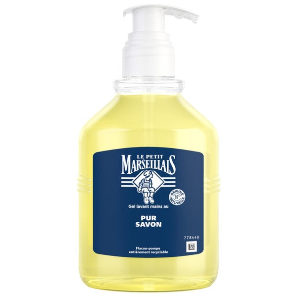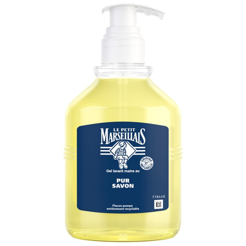 Product descriptionLe Petit Marseillais Gel Lavant Mains Pur Savon is a pure soap handwash specially designed to care for your hands. Thanks to its formula of sun-kissed ingredients, this gel offers gentle, skin-protecting cleansing. With its authentic fragrance and generous foam, it is suitable for all skin types. What's more, its 92% natural-origin formula and neutral pH make it a skin-friendly product. This hand cleansing gel is formulated with Aqua, Sodium Laureth Sulfate, Cocamidopropyl Betaine, Glycerin, Sodium Chloride, Parfum, Citric Acid, Sodium Benzoate, potassium Cocoate, Limonene, Linalool, Sodium Hydroxide, Alpha-Isomethyl Ionone, Potassium Olivate, Cocos Nucifera Oil, CI 47005, Tocopherol and Olea Europaea Fruit Oil. This composition guarantees effective cleansing while preserving the skin's natural moisture. The fully recyclable pump bottle offers practical, environmentally-friendly use. What's more, this hand cleansing gel has been dermatologically tested, guaranteeing its safety and gentleness for the skin. By choosing Le Petit Marseillais Gel Lavant Mains Pur Savon, you're opting for a daily hygiene gesture while taking care of the planet.IndicationsHand Cleanser. All skin type.IngredientsAqua, Sodium Laureth Sulfate, Cocamidopropyl Betaine, Glycerin, Sodium Chloride, Parfum, Citric Acid, Sodium Benzoate, Potassium Cocoate, Limonene, Linalool, Sodium Hydroxide, Alpha-Isomethyl Ionone, Potassium Olivate, Cocos Nucifera Oil, CI 47005, Tocopherol, Olea Europaea Fruit Oil.DirectionsApply to wet hands, rub and rinse thoroughly.