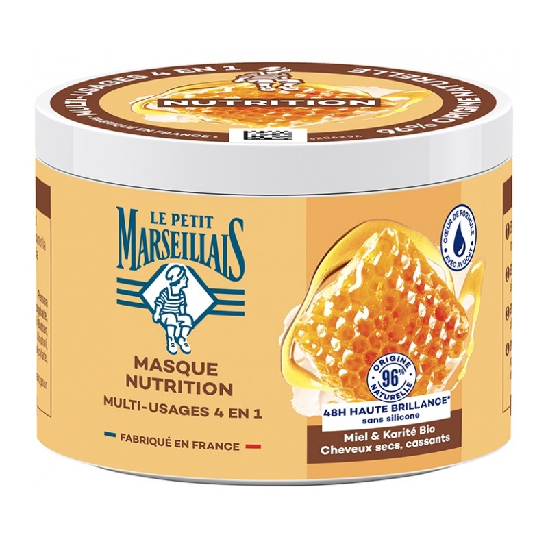 Le Petit Marseillais Multi-Purpose Nutrition Mask 300ml is a multi-purpose mask with Provence honey and Organic Shea butter for dry and brittle hair. It nourishes, softens and repairs.