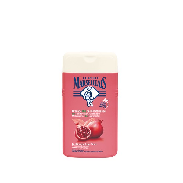- The Mediterranean Le Petit Marseillais organic pomegranate shower gel gently cleanses the skin and gives moisture and freshness, for a noticeable feel