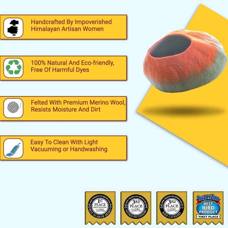 - STYLISH & SPACIOUS SANCTUARY - Our modern felted cat caves for indoor cats is handcrafted by hardworking women from the Himalayas of Nepal using beautiful soft merino wool, the covered cat bed offers a great decorative element to a home while still being a soft warming hideout for your kitty to snuggle in or play on top of.