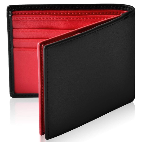 Le sourire Men's Slim Bi-fold Wallet, Genuine Leather - red -
