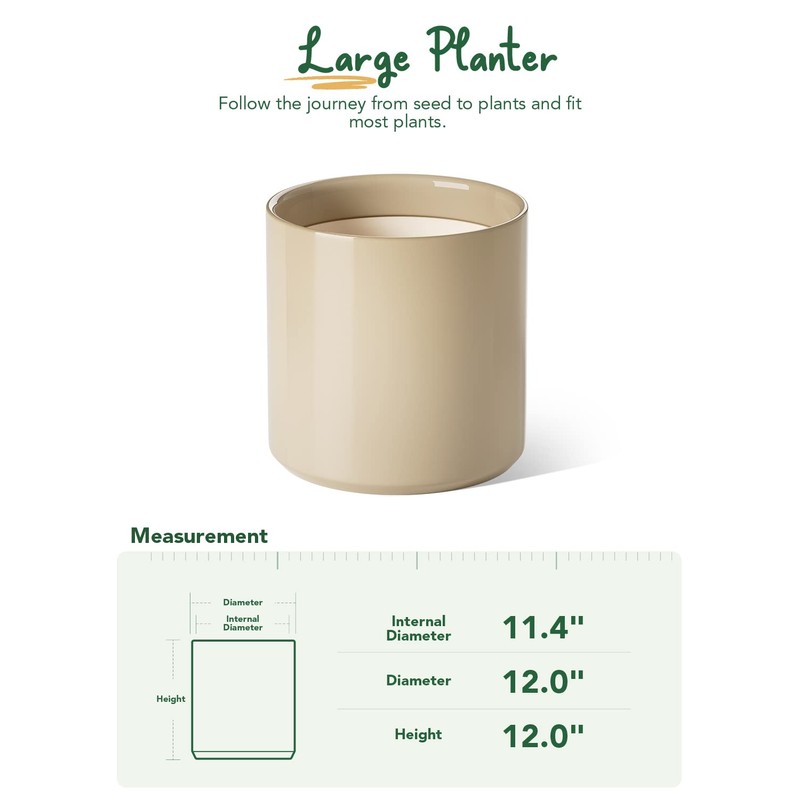 - Ideal Size: At 12 inches in diameter, this planter is the perfect size for your indoor plants; Its spacious size allows you to grow larger plants or multiple smaller plants, adding life and greenery to your space
