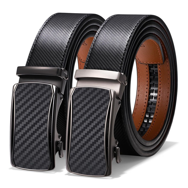 LEACOOLKEY Men's leather belt with slide automatic, Adjustable Ratchet Belt 35mm for men for business casual