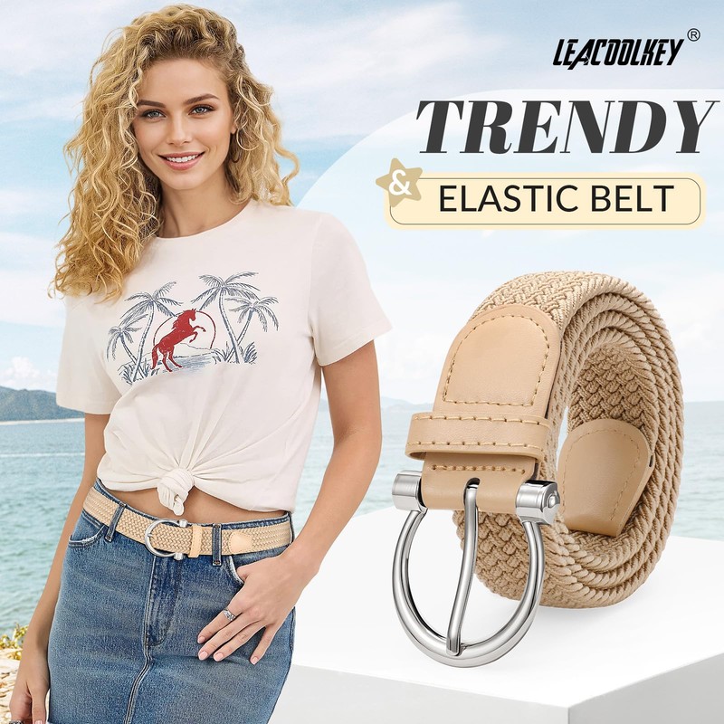 - 【Premium Braided Design】:Crafted from high-quality elastic fabric, this braided belt combines durability with comfort. Available in six versatile shades (black, beige, coffee, white) with matching gold or silver buckles, it effortlessly complements any outfit. The refined 1.38" width ensures a sleek yet functional fit.