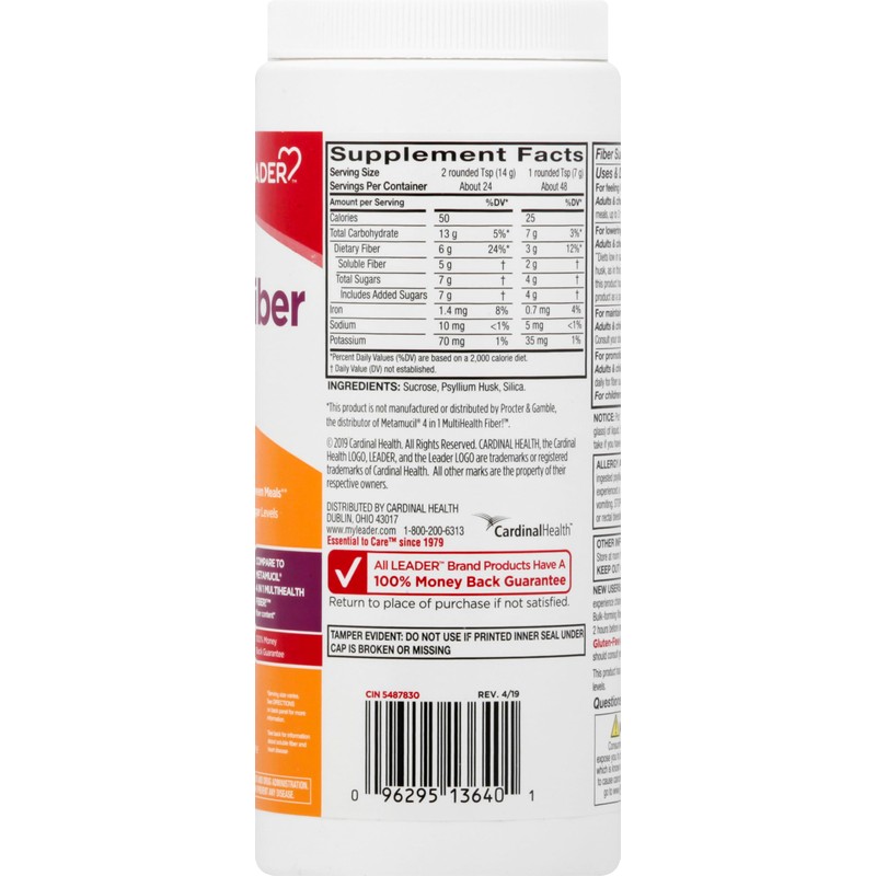Leader Psyllium Husk Powder Supplement 4-in-1 Fiber for Digestive Health, Plant Based 100% Natural Psyllium Husk Daily Fiber, Gluten Free, Non-GMO, Compare to Meta-mucil Multihealth (13 OZ)