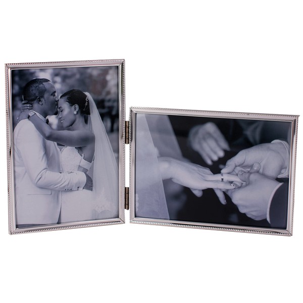 LEADEX Vertical Horizontal Combo- Double 5 by 7 Inch Metal Folding Picture Frames-(1 Landscape and 1 Portrait Style) (Silver)