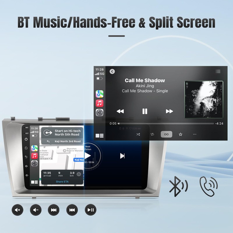 - 【Built-in Wireless CarPlay & Android Auto, Mirrorlink】Upgrade your driving experience with our apple car play for toyota camry touch screen car stereo compatible with CarPlay and Android Auto. Connect via Bluetooth to project your phone's content on the 9 inch large screen, enjoy 1080P videos, HD pictures, GPS navigation, hands-free calls, and music playback. Supports voice control via Siri voice Assistant and phone mirroring, enjoy safer and smarter driving experience