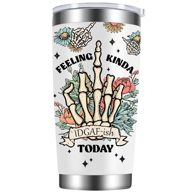 LEADO 20oz Best Friend Coffee Tumbler, Feeling Kinda IDGAF-ish Today - Funny Gifts for Friends Female - Mothers Day, Birthday Gifts for Mom, BFF Gifts, Joke Gifts, Sarcastic Gifts, Skeleton Cup