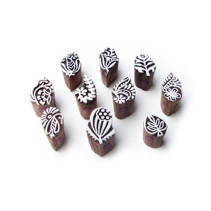 Leaf and Assorted Exclusive Pattern Small Wooden Printing Blocks (Set of 10)