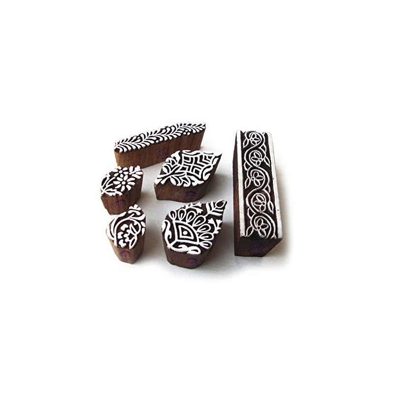 Leaf and Floral Pattern Wooden Blocks for Printing (Set of 6)