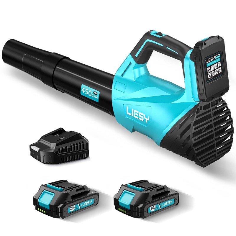 Leaf Blower Cordless with 2 * 20V Batteries and Charger, 2 Speed Levels, Electric Cordless Leaf Blower for Patio Cleaning, Lawn Care, Blowing Fallen Leaves and Dust