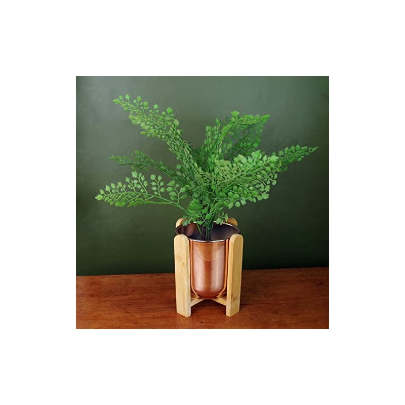 Leaf Indoor Cachepot Planters, Gold Ceramic Wooden Stand, 16cm