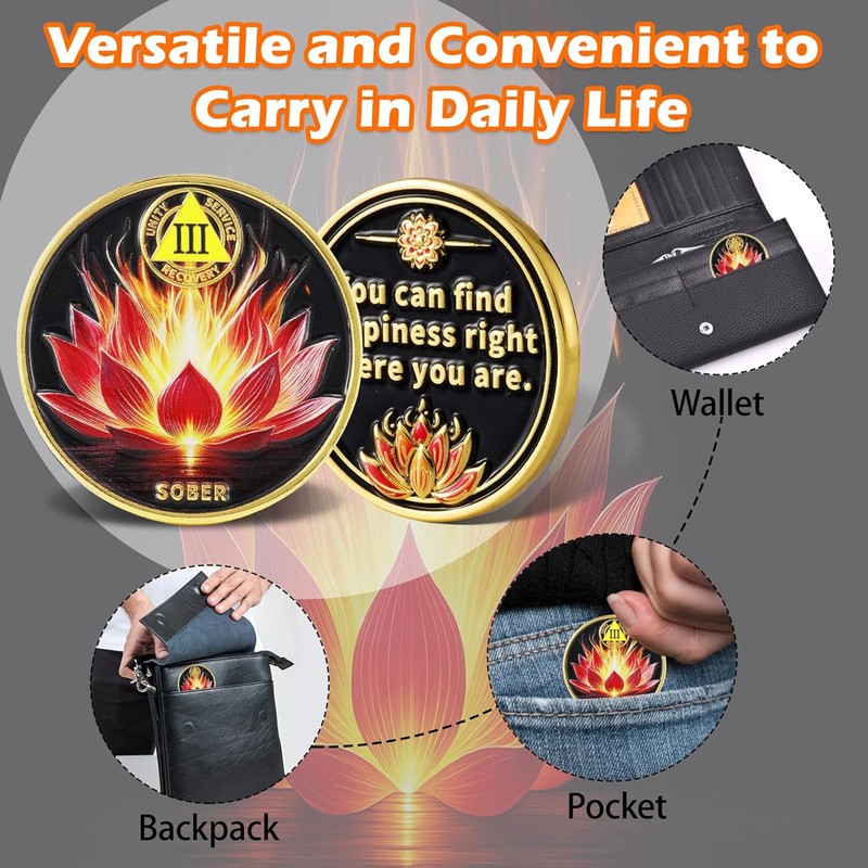 Motivational and Meaningful: Great gifts for people on the recovery journey, this coin provides a visual and spiritual reminder to embrace happiness and peace in the present moment.