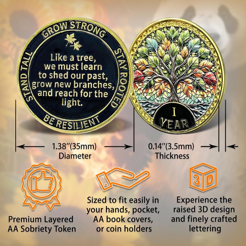 Leafence Tree of Resilience Commemorative Coin Recovery Addiction NA AA Chips and Medallions Challenge Coin Narcotics Alcoholics Anonymous Gifts (Tree of Resilience, 1 Year)