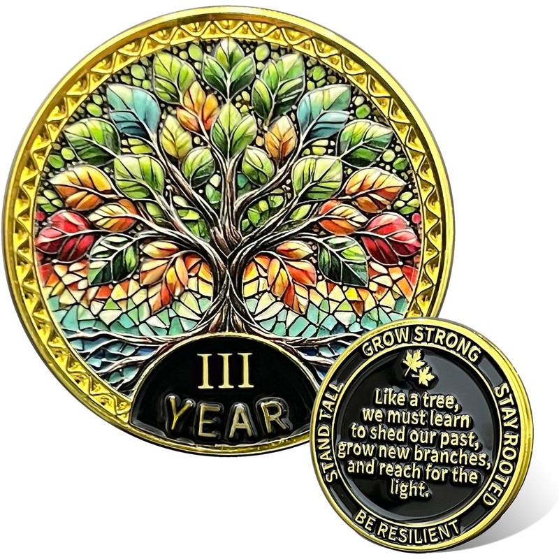 Leafence Tree of Resilience Commemorative Coin Recovery Addiction NA AA Chips and Medallions Challenge Coin Narcotics Alcoholics Anonymous Gifts (Tree of Resilience, 3 Years)