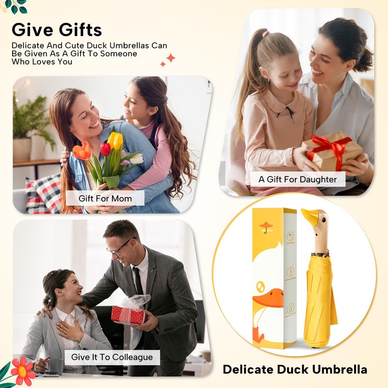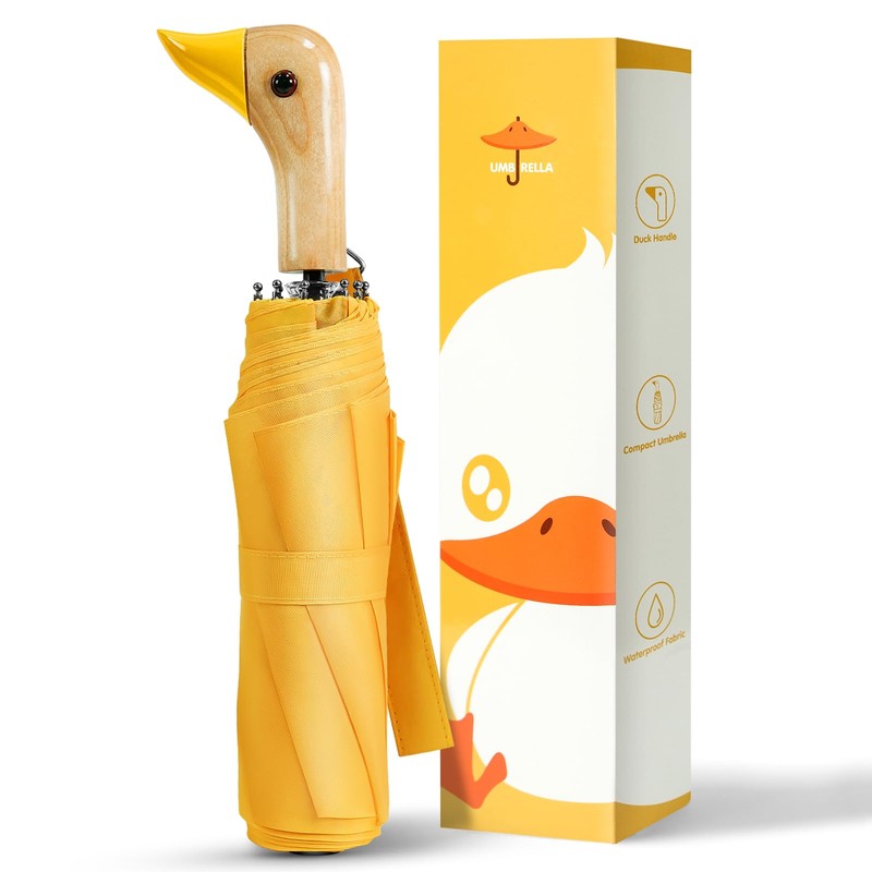 - Cute Design: This is a handmade, custom-designed folding umbrella with a fun duck head handle made of wood. It's erfect for girls who love kawaii style