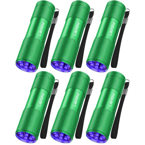 LEAGY 6 Pack UV Ultra Violet Blacklight 9 LED Flashlight Torch Light Outdoors Etc (Green)