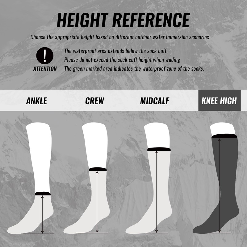 - 【Easy Care & Attention】 Machine wash in cold water (below 60°C/140°F) and tumble dry low or air dry. Avoid bleach, ironing, and dry cleaning to maintain waterproof and thermal performance for years of reliable use. The waterproof area extends below the sock cuff. Please do not exceed the sock cuff height.