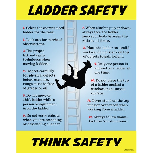 Lean Manufacturing Posters Ladder Safety, Poster, 11"X 14", Made in the USA