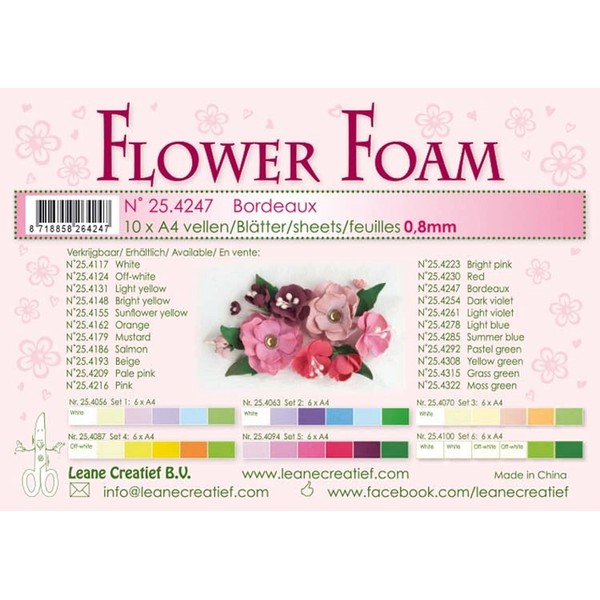• Leane Creatief A4 0.8mm Flower Foam Sheets 10pcs - Bordeaux