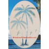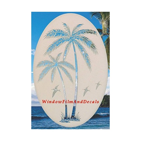 Leaning Palm Trees Oval Etched Window Decal Vinyl Glass Cling - 26" x 41" - White with Clear Design Elements