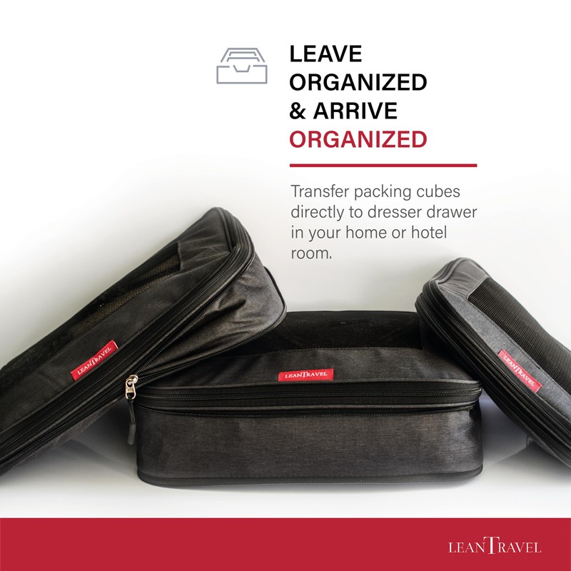 - LEAVE ORGANIZED & ARRIVE ORGANIZED - Organize your business and leisure traveling by packing garments and accessories neatly inside your suitcase carry on or backpack and then transfer packing cubes directly to dresser drawer; The reinforced side structure holds the form of the slim cubes to make your packing and unpacking easier