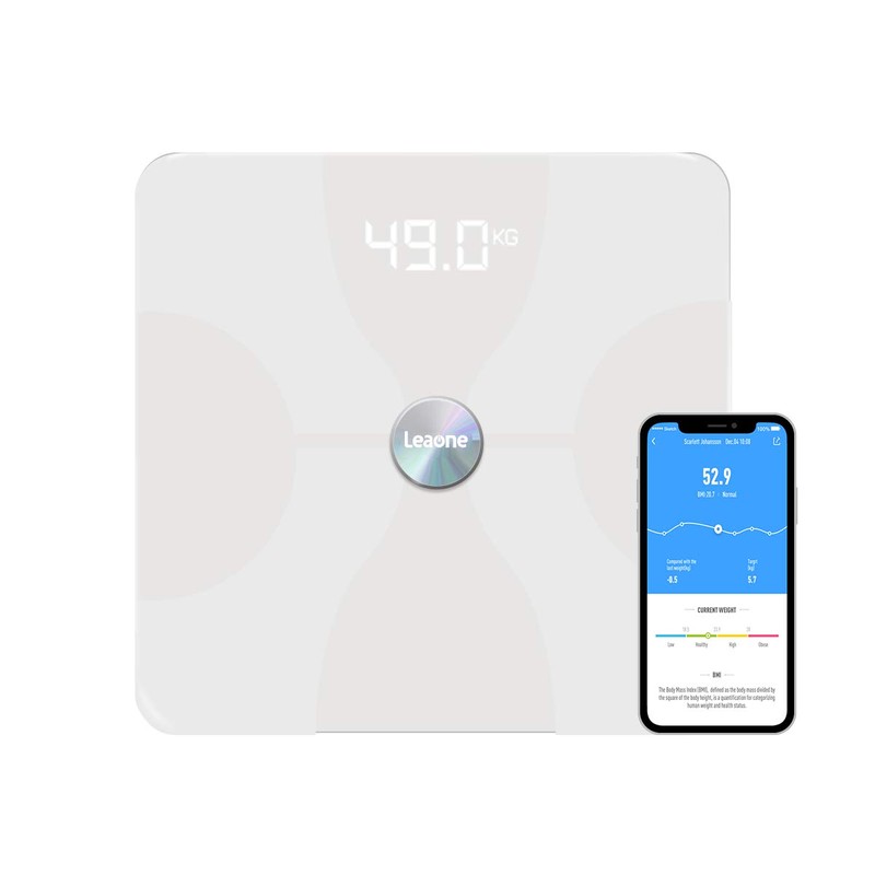 Leaone Bluetooth Body Fat Scale USB Rechargeable Smart Digital Bathroom Weight Scale Body Composition Analyzer with iOS & Android App for Body Weight Fat Water White 1Lb