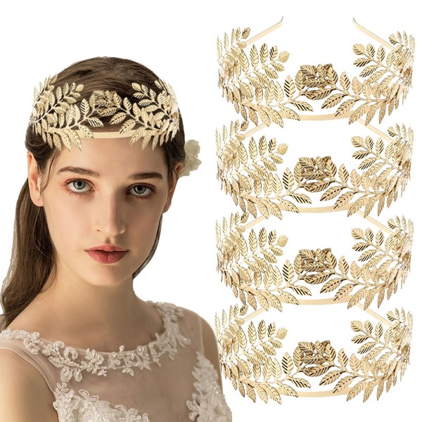 LeapBeast 4 Pezzi Gold Headpiece Headband Bride, Roman Goddess Headband, Laurel Wreath, Golden Hair Accessories Women, for Wedding, Party, Dance Party, Fashion Show, 10 Pieces, Headpiece