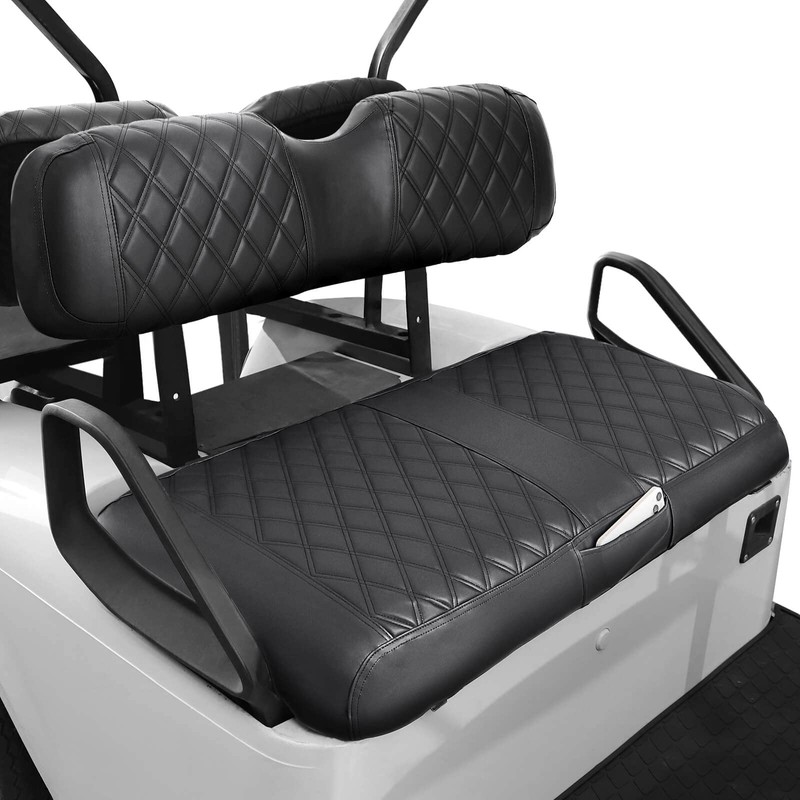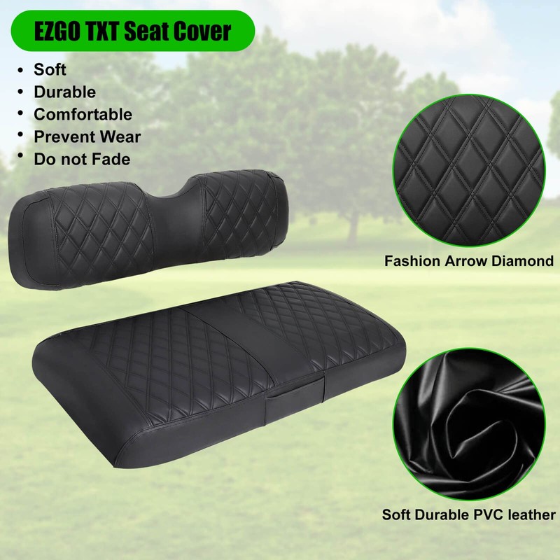 - ⛳ LUXURIOUS DIAMOND LOOK: Renew your golf cart worn or torn seat with custom luxurious diamond EZGO TXT seat covers front. Adds a touch of style and luxury to your golf cart. High quality durable PVC vinyl leather made with breathable foam padding added, which combined with durability, comfortability, fashion that brings your golf riding ultimate enjoyable and comfortable.