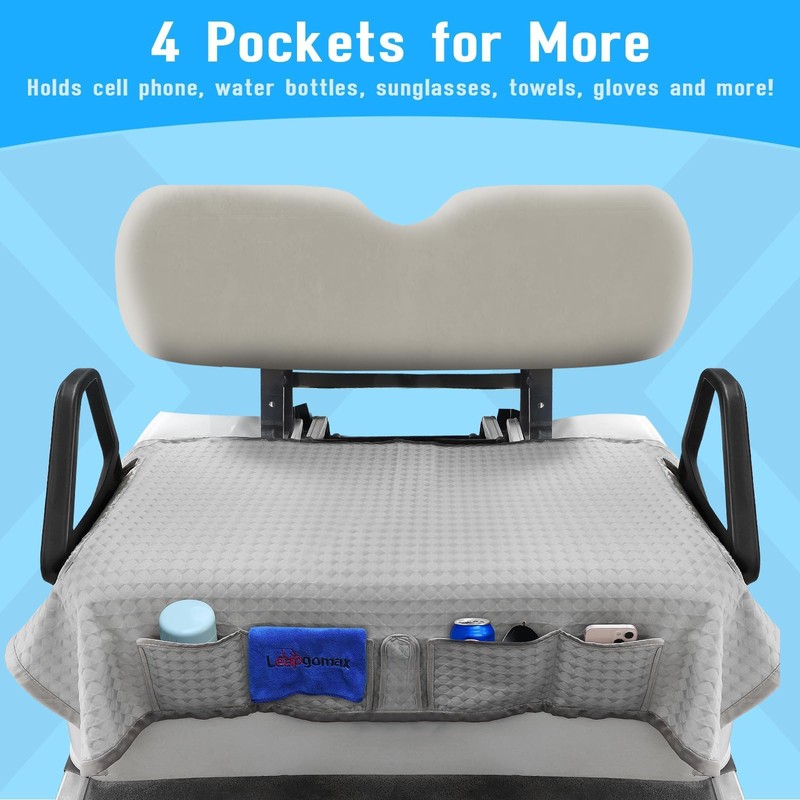 Large storage capacity: Golf cart seat blanket ezgo txt with four large pockets at the front, perfect holds cell phone, water bottles, sunglasses, towels, gloves and other golf-related essentials