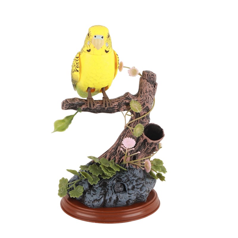 1、1. High Degree of Simulation: lifelike birds, high simulation branches, fine workmanship, just like real birds. When the bird is calling, its head will shake from side to side, its mouth will stay open and closed, its wings will flap, and its body will rock back and forth. 2、2. Simulation And Sound‑activated Sensing Design: This simulated parrots has a sound‑sensing microchip. Once it hears the sound, it will start singing, flapping its wings, and moving its head and tail (for about 1 minute), just like a real bird. 3、3. Sound Activation: Activate these electronic birds by clapping your hands and watching them magically move as they sing. Great entertainment for kids and adults alike. 4、4. Operation Guide: Install the parrots feet on the branch, put 3 AA batteries into the base (not included), turn on the switch, and the parrots will start to imitate what you say. There is also a recording function. 5、5. Lifelike Parrots Gift: The shape of the bird is very realistic, and the color is also very bright. , you can also make it a delicate gift, anniversary decoration, housewarming gift, and more.