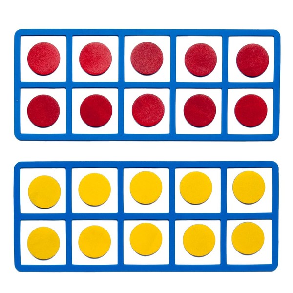 - LARGE SIZE FOR DEMONSTRATING MATH CONCEPTS -- These Giant Ten Frames measure 12. 25 in x 5 in. There is no back on the frames and this permits writing/drawing through the boxes on to a whiteboard or using the included yellow and red counters.