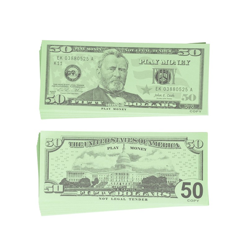 - 50 $50 bills included - This set of fifty Dollar play bills is great for solitary or group play and an ideal resource for the home, center, classroom or playroom.
