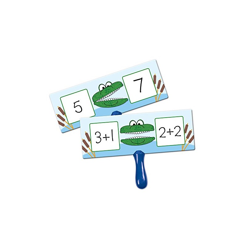 - Write-and-wipe answer boards feature a gator's face with a hinged mouth that can be moved to look like the >, < and = symbols