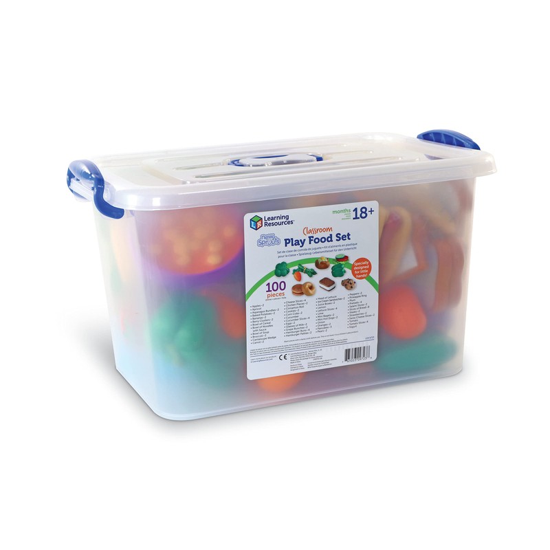 The new Sprouts classroom play food set serves up all the yummy food you need for your dramatic play centers and early nutrition lessons. Invite early imaginative play, build vocabulary, and reinforce healthy eating. Freshly picked play food is made of soft, durable plastic, and sized especially for little hands. The Learning Resources new Sprouts classroom play food set features: 100 durable food pieces with a fresh design, in contemporary shapes soft, rubberized plastic packaged in a large tub with carrying handle (tub measures 14 1/4"L x 9 5/8"H x 12 1/8"H)