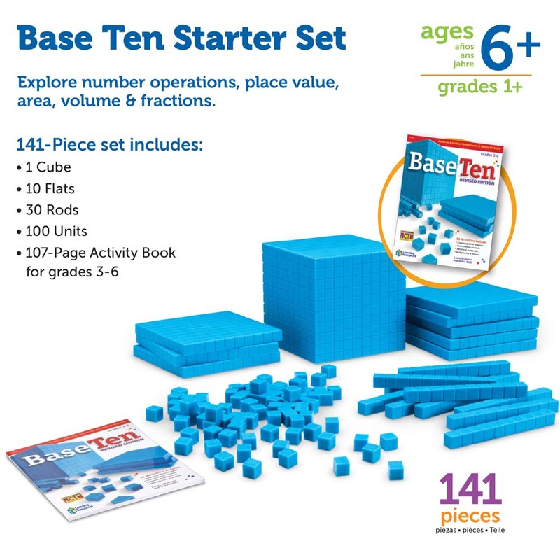 Learning Resources Plastic Base Ten Starter Kit - 141 Pieces, Ages 6+ Early Math, Counting, Math Games for Kids, Teacher and Classroom Supplies