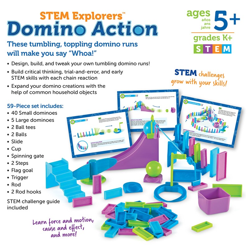 Learning Resources STEM Explorers Domino Action - 59 Pieces, Age 5+ STEM Toys for Kids, Domino for Kids