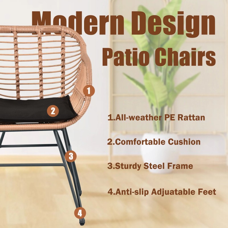 - WARM STYLE: Classic natural color rattan, indoor and outdoor universal design, our wicker patio chairs can be placed in anywhere to blend nature into the home and enjoy a peaceful and comfortable life.