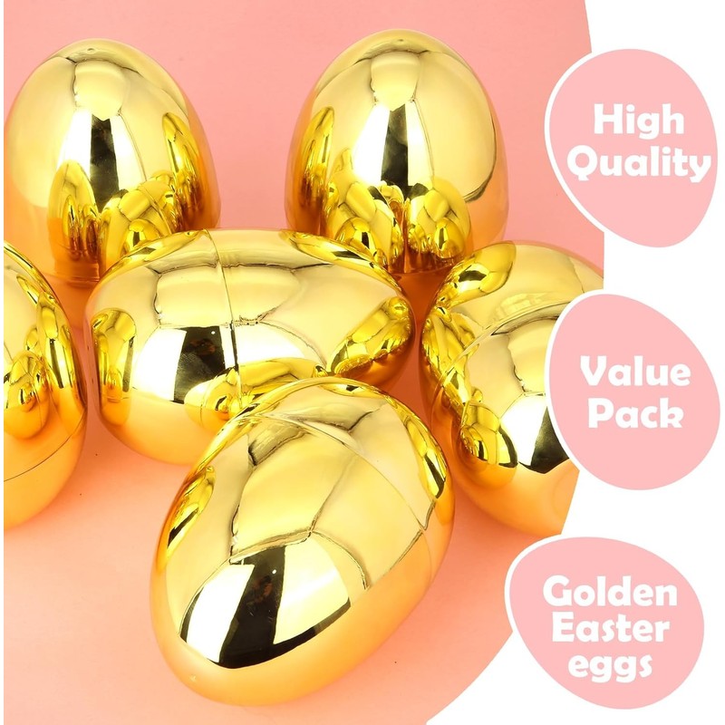 - [ Jumbo Golden Easter Eggs ] Elevate your Easter celebration with our Jumbo Golden Eggs set. Each egg is 6 inches tall. Perfect for filling with toys, candy, or small gifts, making them an exciting addition to any Easter celebration