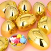 12 Pcs Jumbo Gold Easter Eggs, 6 Inch Metallic Giant Empty Plastic Eggs Fillable for Easter Basket Stuffers Fillers, Easter Party Hunt, Filling Treats Party Favor Classroom Prize Supplies