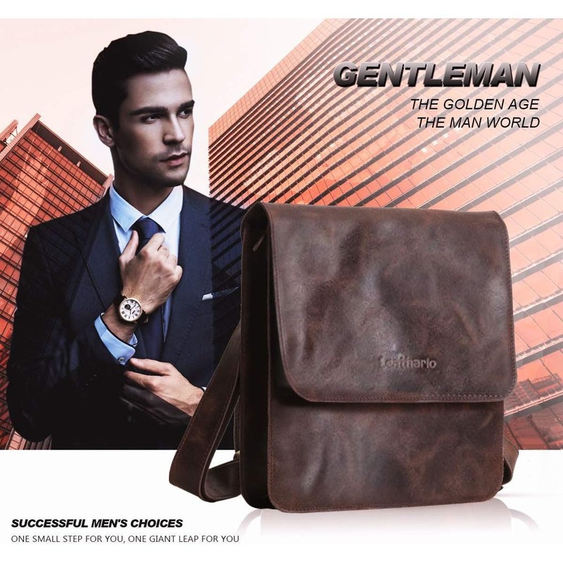 Leathario men's crossbody bag Leather shoulder bag for men messenger Retro PAD Bag Satchel Sling Travel Work