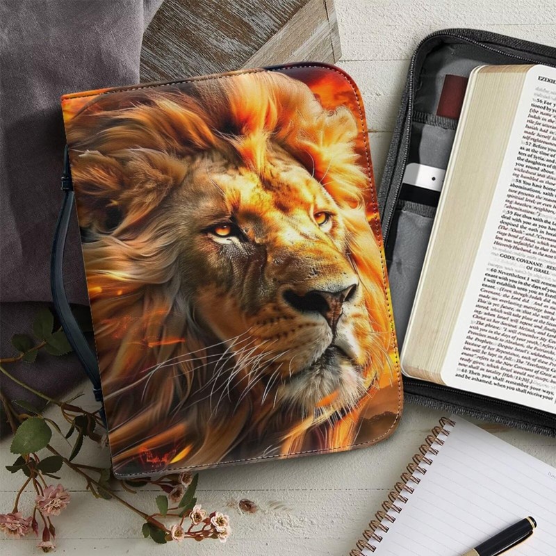 Leather Bible Cover, Book Cover,UINDDWCB Bible Case, Bible Covers for Men, Boys,Lion 5,XL