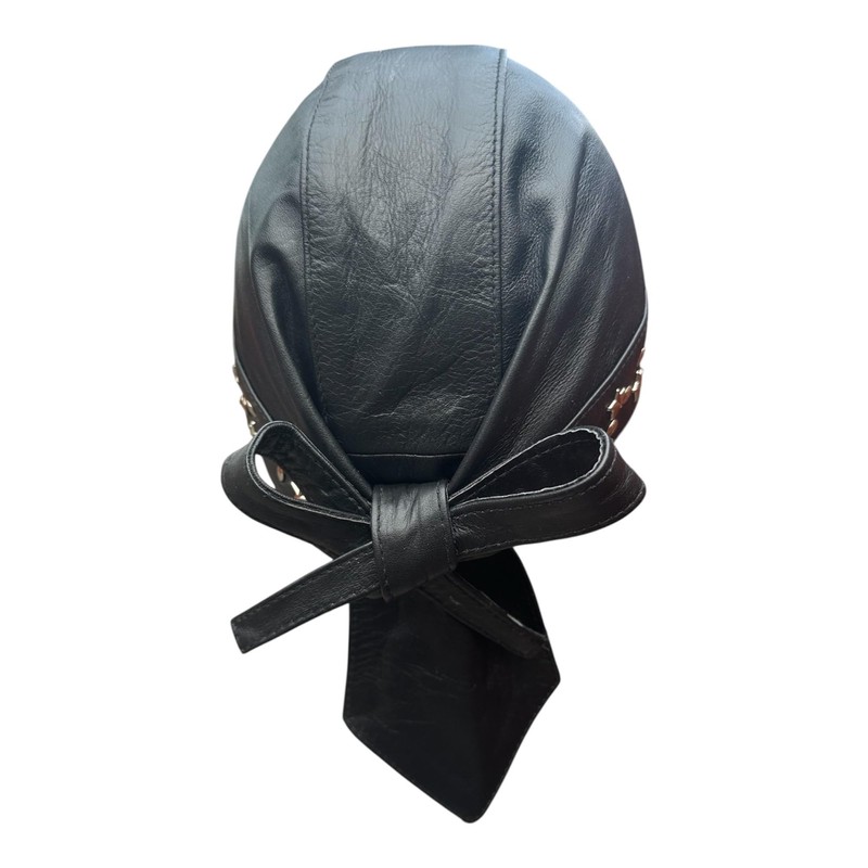Leather Biker Bandana, Black with Star Studs, Tie-Back Design Free Size