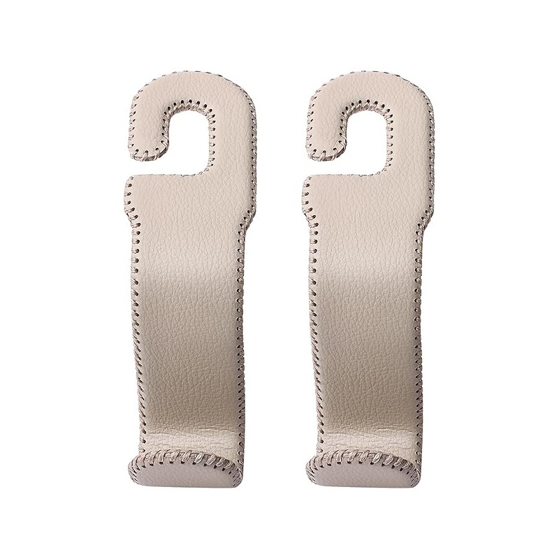 Leather Car Hooks for Headrest - Fully Leather-Wrapped U-Shaped Purse Holder for Car, Flexible Seat Back Organizer & Durable Car Accessories for Purses, Bags, Coats & More (Beige, 2 Pack)