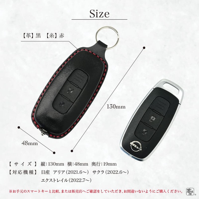 Leather Chaya niss@n-b Smart Key Case, Nissan, Aria, Sakura, Serena, X-Trail Key Case, Men's, Made in Japan, Black