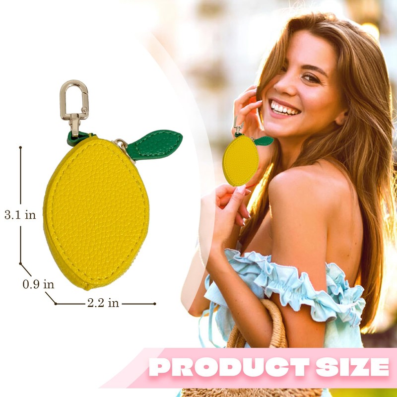 - STYLISH DESIGN: Lemon-shaped Coin Purse with decorative zipper leaf detail and gold-tone hardware adds a touch loveliness for your keys,bags,backpacks.