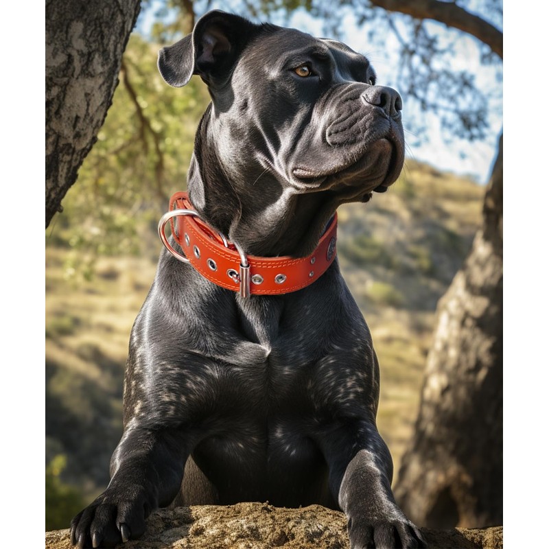 Leather Dog Collar, 5 cm Wide, Robust Genuine Leather Collar, Handmade, Soft and Luxurious, Eye-catching, Best Choice for Large and Medium Dog Breeds, Orange, 49.5-60 cm
