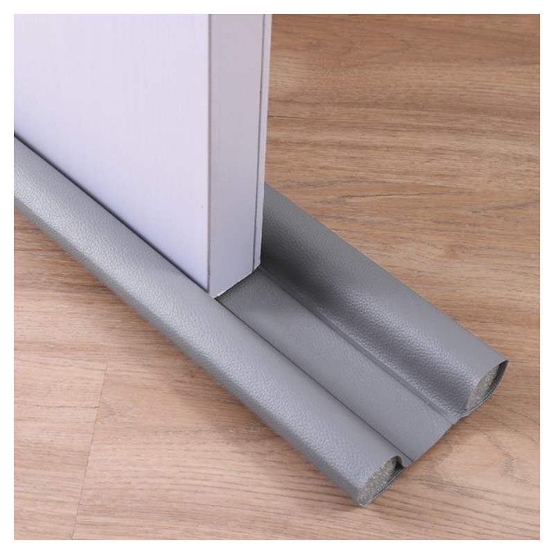 Leather Door Gap Draft Stopper Weatherstrip 2-Piece Set (Gray)