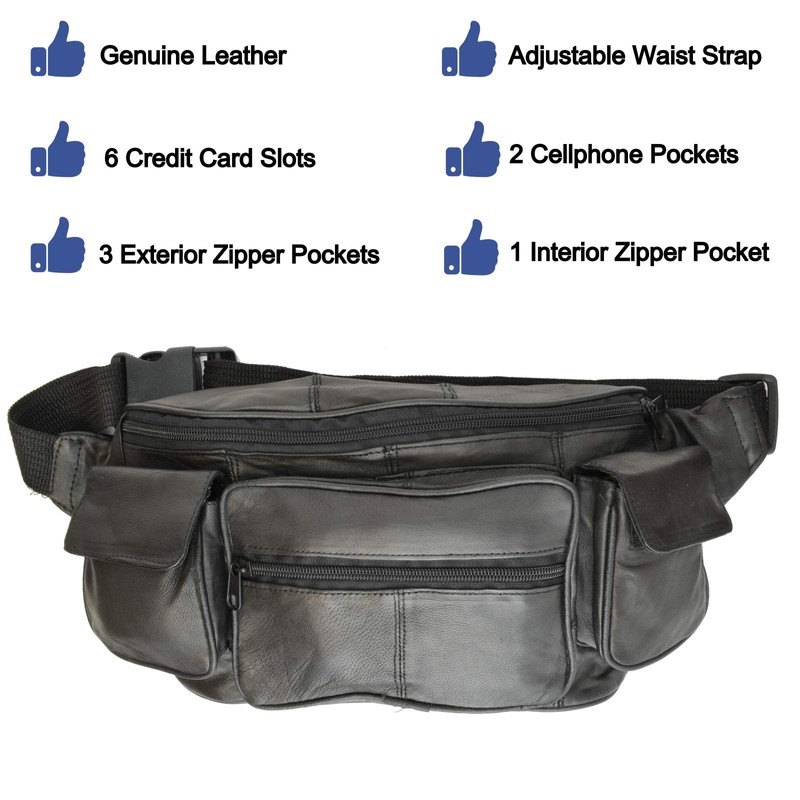 Leather Fanny Bag - 405 - Black
